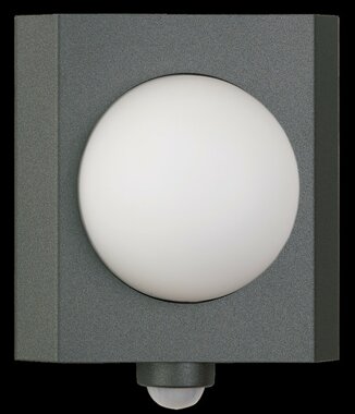 Albert-Wandleuchte 626216 - mit integriertem Bewegungsmelder - aus lackiertem Edelstahl, Farbe anthrazit mit opalem Glas. Eingerichtet für 1 x Glühlampe A60 75 W, Fassung E27.Schutzart IP 44 - Schutzklasse : 250 x 275 x 150 mm