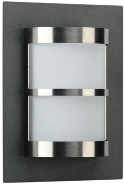 Albert-Wandleuchte 626224 aus Edelstahl mit opalem Glas, Montageplatte aus Aluminiumguß. Eingerichtet für 1 x Glühlampe A60 75 W, Fassung E27.Schutzart IP 44 - Schutzklasse : Bicolor - Edelstahl / Anthrazit Abmessungen: 200 x 260 x 95 mm