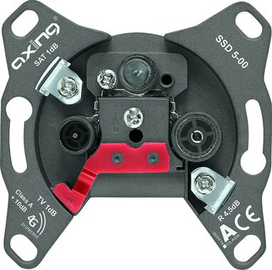 CATV | SAT premium-line Ultra HD tauglich, Klasse A gemäß EN 50083-2/A1 (+ 10 dB zum Schutz vor LTE-Störungen für passive Bauelemente), Frequenzbereich 5...2200 MHz, Rückkanaltauglich 5...65 MHz, Einkabeltauglich gemäß EN 50494/EN 50607, Montagefreundlich, Absetzmaß 8/13 mm, verlängerte F-Buchsen, Oberflächenveredelt, passend für alle gängigen Schalterprogramme