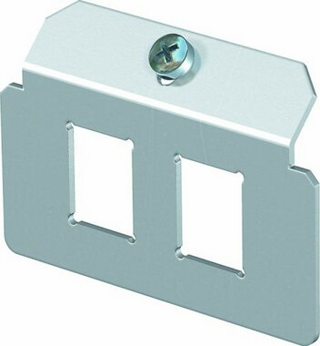 Trägerplatte zur Aufnahme von zwei Daten-Anschlussmodulen folgender Typen: Brand-Rex: geschirmt; EKU: E-Stone; Dätwyler: KS-T, MS-K und KU-T; R&M: Snap-In und Keystone; Rutenbeck: UM und UMflex; SETEC: MKJ, UKJ und XKJ; Siemon TERA; Telegärtner: AMJ und UMJ: 3M: CAT6 und CAT6A. Abmessung einer Montageöffnung in mm: 19,30 x 14,80.