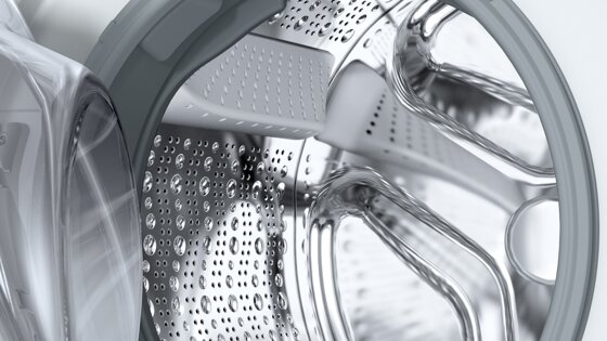 Das innovative AntiVibration Design der Seitenwände ist nicht nur ein optisches Highlight: Die Funktion sorgt für mehr Stabilität und reduziert Vibrationen. Die optimale Dämmung reguliert das Geräuschaufkommen, sodass die Waschmaschine selbst im Schleudergang sehr leise ist.