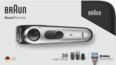 Braun 81703323, Base. Minimum Haarlänge: 0,5 mm, Maximum Haarlänge: 2 cm, Stufe präzise: 0,5 mm. Produktfarbe: Schwarz, Silber, Ursprungsland: Deutschland. Energiequelle: Wechselstrom/Batterie, Batterietechnologie: Lithium-Ion (Li-Ion). Accessories inklusive: Gillette Fusion5 ProGlide
