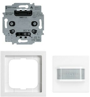 Einbaufertiger Bewegungsmelder zur Unterputzmontage (Set-Verpackung). Bestehend aus Busch-Wächter® 180 flex Komfort Sensor mit Selectlinse, 62762-84-WL. Bestehend aus Relais-Einsatz flex, 1-fach, 64811 U. Bestehend aus future® linear Abdeckrahmen, 1-fach 1721-184K. Die Reichweitenangaben beziehen sich auf eine Umgebungstemperatur von 21 °C. Nur in Verbindung mit handelsüblichen UP-Gerätedosen nach DIN 49073, Teil 1 montieren oder Busch-Jaeger Art.-Nr. 3040 UP-Dose Mauerwerk, 3050 UP-Dose Hohlwand oder 3060 UP-Dose Beton)