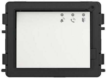 Für den Einsatz in Aluminium Außenstationsrahmen. Erste Ruftaste des ersten angeschlossenen Türklingelmoduls kann über DIP-Schalter wahlweise als Lichttaste aktiviert werden. Integrierte Zustandsanzeige über LED-Symbole (Erfüllt DIN 18040). Verbrauchseinheiten: 2