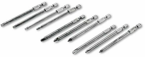 Bit-Sortiment Elektro Top Set bestehend aus 20 Schraubbits in den im Elektrobereich gängigsten Typen und Größen, Bitlänge 90 mm. In praktischer Transport- und Aufbewahrungsbox. Inhalt: 1 Universal-Bithalter mit Dauermagnet, Länge 60mm, je 2 Stück Bits Kreuzschlitz Phillips PH1, PH2, PH3, Kreuzschlitz Pozidriv Pz1, Pz2, Pz3, Torx Größe T10-T15-T20-T25, 21-teilig.