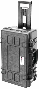 Staub- und wasserdichter Werkzeugkoffer nach IP67, stapelbar, bruch- und stoßfest. Beständig gegen Säure und für Temperaturen von -33°C/+90°C. Bestückt mit einem Dokumentenfach, einer Werkzeugtafel mit Lamellen, einer Werkzeugtafel mit Taschensystem, einem ergonomischen Zwei-Komponenten-Griff und Klappverschlüssen für optionales Vorhängeschloss. Mit Trolleyfunktion. Für den Überdruckausgleich wurde der Koffer mit einem manuellen Druckausgleichsventil ausgestattet. Der im Deckel umlaufende O-Dichtring schützt den Inhalt des sehr standfesten und widerstandsfähigen Koffers. Leergewicht Koffer: 7.500 g