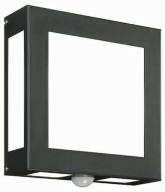 Wandleuchte, Edelstahl anthrazit pulverbeschichtet, Opalglas weiß, Lichtaustritt allseitig, mit Bewegungsmelder ca. 200°, Zeiteinstellung ca. 10 Sek. - 8 Min., Reichweite max. 8 m, ohne Leuchtmittel, 2x E27 max. 60 Watt, BxHXT 28x28x9,5 cm, IP44