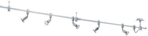 Die LED Deckenleuchte VILANOVA besteht aus einer Aluminium-Schiene, die mit drei Halterungen an der Decke angebracht werden kann. Kombiniert wird die Leuchte mit fünf beweglichen Spots aus chromfarbenem Metall, die sich flexibel an der Schiene positionieren lassen. Die zeitlose Deckenlampe rundet moderne Einrichtungstrends ab und und bietet eine gezielte Ausleuchtung im Raum ? egal ob in der Küche, im Wohnzimmer, Schlafzimmer oder Flur. Die abgebildeten GU10-Leuchtmittel sind im Lieferumfang enthalten und spenden angenehmes warmweißes Licht. Die Serie VILANOVA sorgt für ausreichende Beleuchtung in all Ihren Räumlichkeiten und ist individuell einsetzbar.