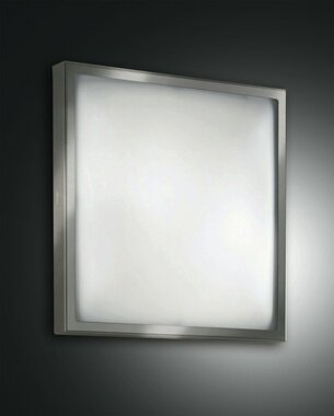 Glas weiß satiniert, Metallrahmen, 46 Watt ECO. Farbe: nickel, Maße (L x B x H): 30 x 30 x 8,5cm, für LM 2 x E27