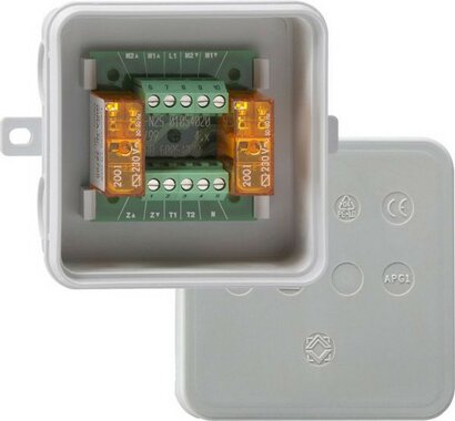 Trennrelais 2fach Das Trennrelais Aufputz wird in einer wassergeschützten Abzweigdose für den Einbau in den Jalousie- bzw. Rollladenkasten geliefert.