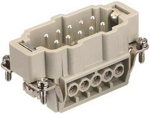 Einsätze, Schraubanschluss, Stift, Polycarbonat (PC), RAL 7032 (kieselgrau), Bemessungsstrom: 16 A, Baugröße: 10 B, Kontakte: 10, Leiterquerschnitt: 0,75...2,5 mm², Kupferlegierung, versilbert