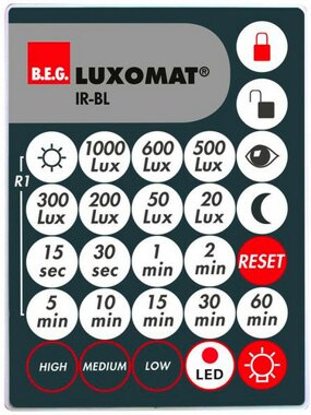 Infrarot-Fernbedienung zum komfortablen Einstellen oder Ändern der Parameter, Inklusive Wandhalterung, Einfache Programmierung der Deckenbewegungsmelder BL2, BL4 und BL4-K/C