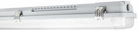 Feuchtraumleuchten für T8-LED-Lampen mit werkzeugloser Leuchtenklemme. Produkteigenschaften: Leuchtengehäuse, verfügbar für 1 oder 2 T8-LED-Röhren. Geeignet für LED TUBE T8 EM und LED TUBE T8 CONNECTED. Schutzart: IP65. Integrierte elektrische Sicherung. Produktvorteile: Einfache und schnelle Installation. Vorverdrahtet für die einfache Installation von röhrenförmigen AC-LED-Lampen. Werkzeuglose Installation. Robustes Gehäuse. Nachhaltige Lösung dank austauschbarer Lichtquellen. 5 Jahre . Anwendungsgebiete: Parkgaragen, Lagerflächen, Fertigungsbereiche. Parkplätze und Unterführungen. Garagen. Technische Ausstattung: Erforderliches Zubehör enthalten. Durchgangsverdrahtungs-Set verfügbar.