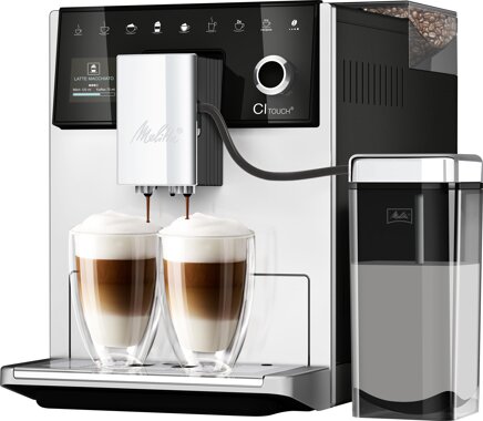 Melitta CI Touch. Produkttyp: Espressomaschine, Kaffeezubereitungstyp: Vollautomatisch, Fassungsvermögen Wassertank: 1,8 l, Kaffee-Einfüllart: Kaffeebohnen, Behälter für gebrühten Kaffee: Tasse, Eingebautes Mahlwerk. Display-Typ: TFT. Leistung: 1400 W. Produktfarbe: Silber