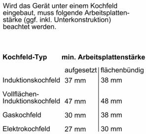 | Sicherheitsvorrichtungen | Kindersicherung, Restwärmeanzeige, Sicherheitsabschaltg. Backofen, Starttaste, Türkontaktschalter |