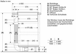 - Im Geräteset ist der erste relevante Bogen bereits enthalten: Arbeitsplattentiefe ? 60 cm - gekürzte Auszüge (90° ?S? Flachkanalbogen Z861SB4, männlich) Arbeitsplattentiefe ? 70 cm - Standardauszüge (90° ?L? Flachkanalbogen Z861SB2, männlich) Für eine teilgeführte Umluft bis in den Sockelbereich bieten wir eine Vorzugsverrohrung als Zubehör-Set Z861KR2 an (ausgelegt für eine Arbeitshöhe bis zu 960 mm). Für eine individuelle vollgeführte Umluft steht umfangreiches Sonderzubehör zur Verfügung.