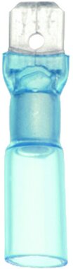 Messing (CuZn), metallische Isolationsunterstützung Cu-ETP, galv. Sn, zweilagige Isolation mit thermoplastischem Innenkleber, nach dem Schrumpfen entsteht eine wasserdichte Verbindung, Schrumpftemperatur: 100°C, Durchschlagsfestigkeit: 30kV/mm, Dehnungsfestigkeit 27 MPa, Ausdehnung 450%, Längenveränderung max. 10%, Gravitation (Dichteverhältnis) 0,95 cm³. Steckerabmessungen: flach 6,3x0,8 mm . Passendes Werkzeug: PCSV Crimpzange (Art. 05104819).