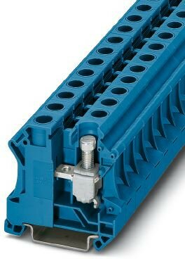 Installationsklemme, Nennspannung: 400 V, Nennstrom: 76 A, Schraubanschluss, 1. Etage Anschluss rechts, Bemessungsquerschnitt: 16 mm², Querschnitt: 6 mm² - 25 mm², Montageart: NS 35/7,5, NS 35/15, Farbe: blau