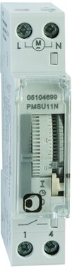 Analog, 24 h Programm, Kanäle: 1. Kontaktart: Schließer, TLE: 1. Verlustleistung: 0,85 W, Ganggenauigkeit: netzsynchron, Betriebsspannung: 230 V AC, Betriebsfrequenz: 50 Hz, Handbedienung, Schutzart: IP30, Montageart: DIN-Schiene, Ohmsch cos phi = 1: 3680 W, Induktiv cos phi = 0,6: 2760 W, Glühlampen: 1000 W, LL-reihenkompensiert: 1400 VA, LL-parallelkompensiert (<,= 7uF): 1x58 W. KLL: 100 W. NV-Halogen: konventionell: 1000 W, elektronisch: 2300 W. Motoren/Lüfter: 1000 W. Schaltgenauigkeit: +/- 5 Min. Schaltschritt: 15 Min. Kürzeste Schaltzeit: 15 Min. Betriebstemperatur: -10°C bis +55°C.