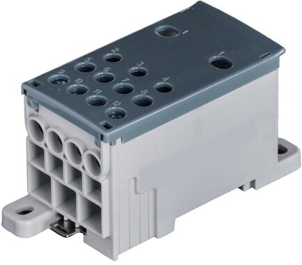 Verteilerklemme für die Montage auf DIN-Tragschienen oder Montageplatten. Klemmkörper: Messing, verzinnt. Klemmschrauben: Stahl, verzinkt. Isoliergehäuse: Kunststoff (PA /PC) schlagzäh, flammgeschützt, Dauergebrauchstemperatur: 120°C. Normen / Vorschriften: Verbindungsmaterial für Niederspannungs-Stromkreise für Haushalt und ähnliche Zwecke VDE 0613 Teil 1 / EN 60998-Reihenklemme VDE 0611-1 / EN60947-7-1. Isolationsspannung: 1000 V AC / DC für: Überspannungskategorie III (Uimp = 8 kV, feste Installation), Verschmutzungsgrad 2 (z. B. Verteilereinbau). Betriebstemperatur: max. 70°C. Befestigung: Auf DIN Tragschiene nach EN 50022 / EN 60715 oder Schraubbefestigung M5. Berührungsschutz: IP 20, fingersicher. Ecken gerundet. Geeignet für rund ein-und mehrdrähtige Cu- und eindrähtige Al-Leiter. Abdeckung: Klappdeckel.