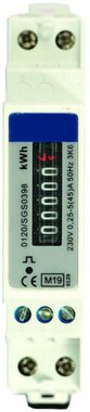 Einphasiger, analoger Wechselstromzähler 1 DIN (TE) Maße (LxTxH): 17,5 x 62 x 119 mm Schutzart: IP51 Isolierung: Klasse II Plombierbarer Klemmdeckel Direkte Wirkenergiemessung MID-konformitätsbewertet (geeicht) Anzeige und Zählung des aktiven Energieverbrauchs in einphasigen 230 V-Anlagen bis zu einem maximalen Strom von 45A Direkte amperometrische Einspeisung Zweifacher Impulsausgang S0: Offener Kollektortransistor (Open Collector Transistor) 5-27 VDC Max. 27 mA DC Betriebsspannung: 230V ÷ 0,25-5(45)A ÷ 50Hz Nennspannung: 230V AC Genauigkeitsklasse: Classe 1 IEC/EN62053-21, Classe B EN50470-1/3 Betriebstemperatur: -25°C bis +55°C Lagertemperatur: -40°C bis + 70°C S0: 1.000 imp/kWh Max. Ablesung: 99.999,9 kWh