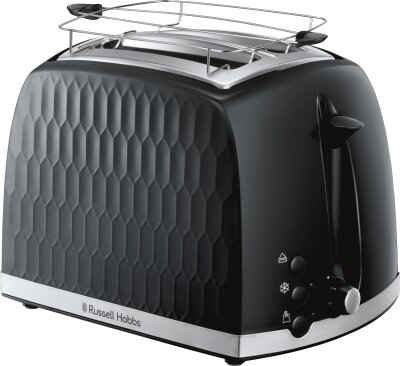 Russell Hobbs Honeycomb Black 2 Slice Toaster. Anzahl der Scheiben: 2 Scheibe(n), Produktfarbe: Schwarz, Gehäusematerial: Kunststoff. Leistung: 850 W. Gewicht: 1,6 kg