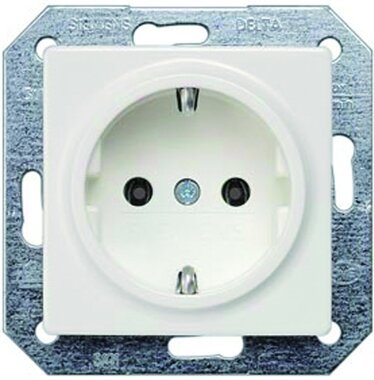 DELTA i-system, elektroweiß Schuko-Steckdose 10/16A 250V Mit schraubenlosen Anschlussklemmen Abdeckungplatte 55x 55mm