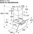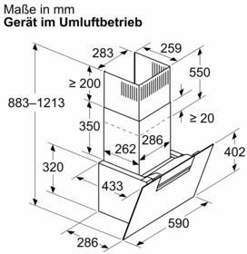 - Gerätemaße Abluft (HxBxT): 883-1126 x 590 x 433 mm