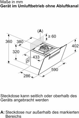 - Maße Umluftbetrieb, kaminlos (HxBxT): 360 mm x 590 mm