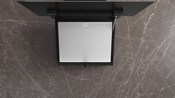 - Großer Öffnungswinkel der Glasplatte mit Arretierungsfunktion für eine einfache Filterzugänglichkeit und leichte Reinigung.
