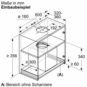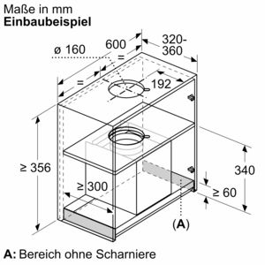 - Einbaumaße (HxBxT): min. 340 mm x 560 mm x min. 300 mm