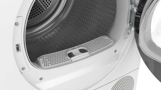 - softDry-Trommelsystem: große Edelstahltrommel, Mitnehmer im Softdesign