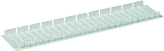 Verschlussstreifen mit Teilungseinheiten für Platzeinheiten, laufender Meter, abbrechbar, Farbe: lichtgrau, RAL 7035, zum Verschließen von freien 45 mm Geräteschlitzen.