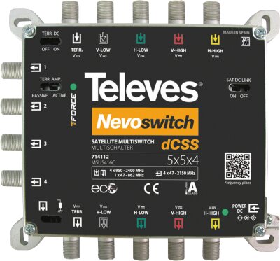 Kaskadierbarer Einkabel-Multischalter mit 5 Eingängen (1 x Terrestrik
