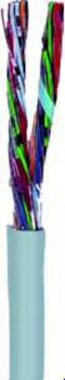 Nach DIN VDE 0815 Betriebsspitzenspannung: 300 V Aufbau: Blanker massiver Kupferleiter, Aderisolation aus PVC, Adern zum Sternvierer verseilt, Vierer in Bündel zu Lagen verseilt, Lagenumwicklung aus Kunststofffolie, ungeschirmt, Außenmantel aus PVC, Mantelfarbe: grau Eigenschaften: Einsatz als Installationskabel für Daten- und Signalübertragung. Für feste Verlegung auf, im und unter Putz, in trockenen und feuchten Räumen, im Freien (ohne direkte Sonneneinstrahlung), jedoch keine Erdverlegung.
