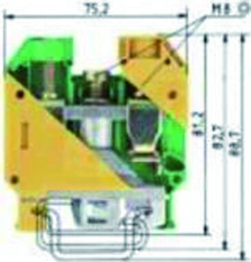 Schutzleiterklemme für Montage auf Tragschiene TS35. Strombelastbarkeit der Tragschienen beachten!